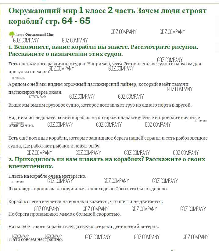 Здесь готовые ответы по Окружающему миру за 1 (первый) класс от Плешаков Учебник Школа России (издательство: Просвещение от 2017 г.) № 64-65