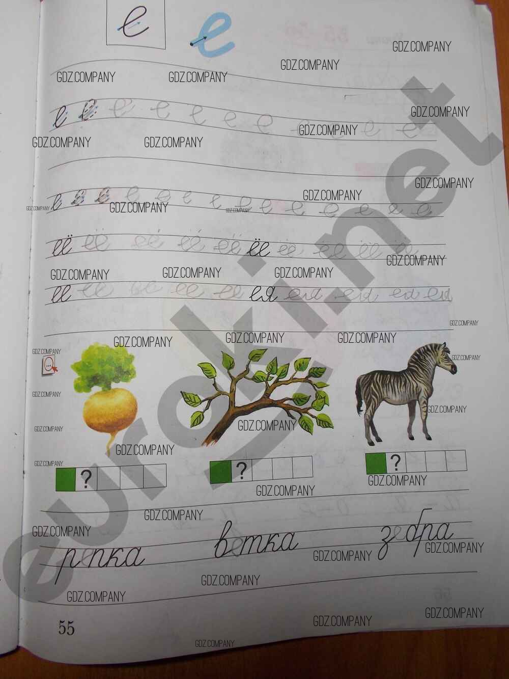 Здесь готовые ответы по Русскому языку за 1 (первый) класс от Безруких, Кузнецова Рабочая тетрадь УМК (издательство: Вентана-граф от 2019 г.) № 55