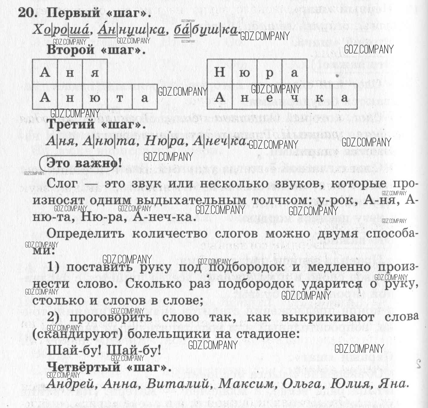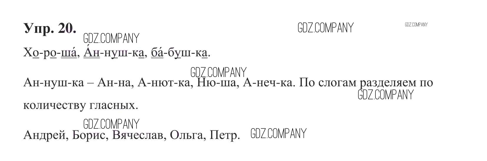 Здесь готовые ответы по Русскому языку за 1 (первый) класс от Бунеев, Бунеева, Пронина Учебник Школа 2100 (издательство: Баласс от 2016 г.) № 20