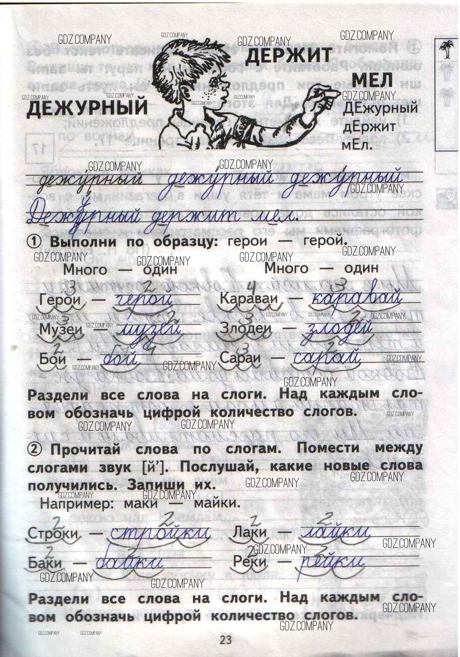 Здесь готовые ответы по Русскому языку за 1 (первый) класс от Гольфман, Чуракова Тетрадь для самостоятельной работы Перспективная начальная школа (издательство: Академия от 2016 г.) № 23