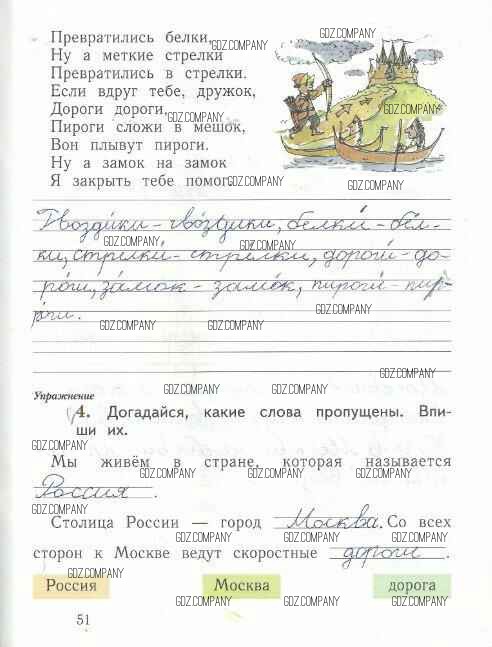 Здесь готовые ответы по Русскому языку за 1 (первый) класс от Иванов, Евдокимова, Кузнецова Рабочая тетрадь Начальная школа XXI века (издательство: Вентана-граф от 2016 г.) № 51