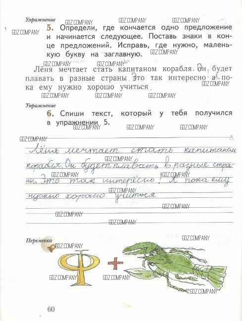 Здесь готовые ответы по Русскому языку за 1 (первый) класс от Иванов, Евдокимова, Кузнецова Рабочая тетрадь Начальная школа XXI века (издательство: Вентана-граф от 2016 г.) № 60