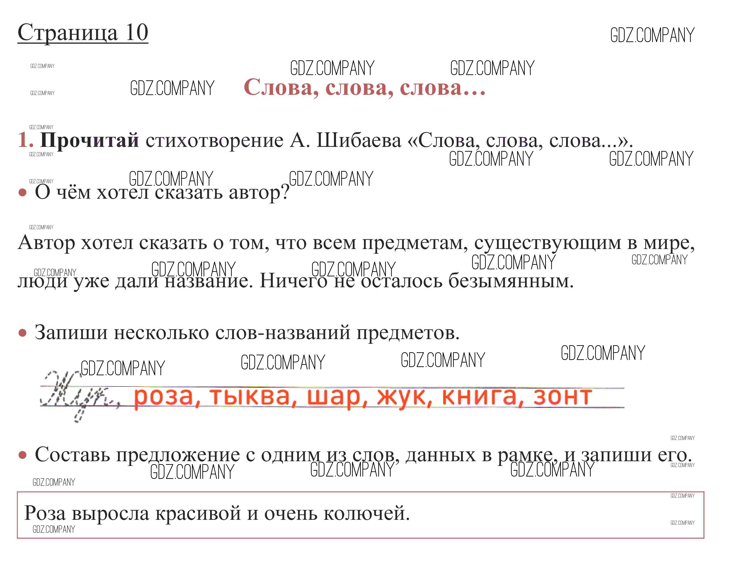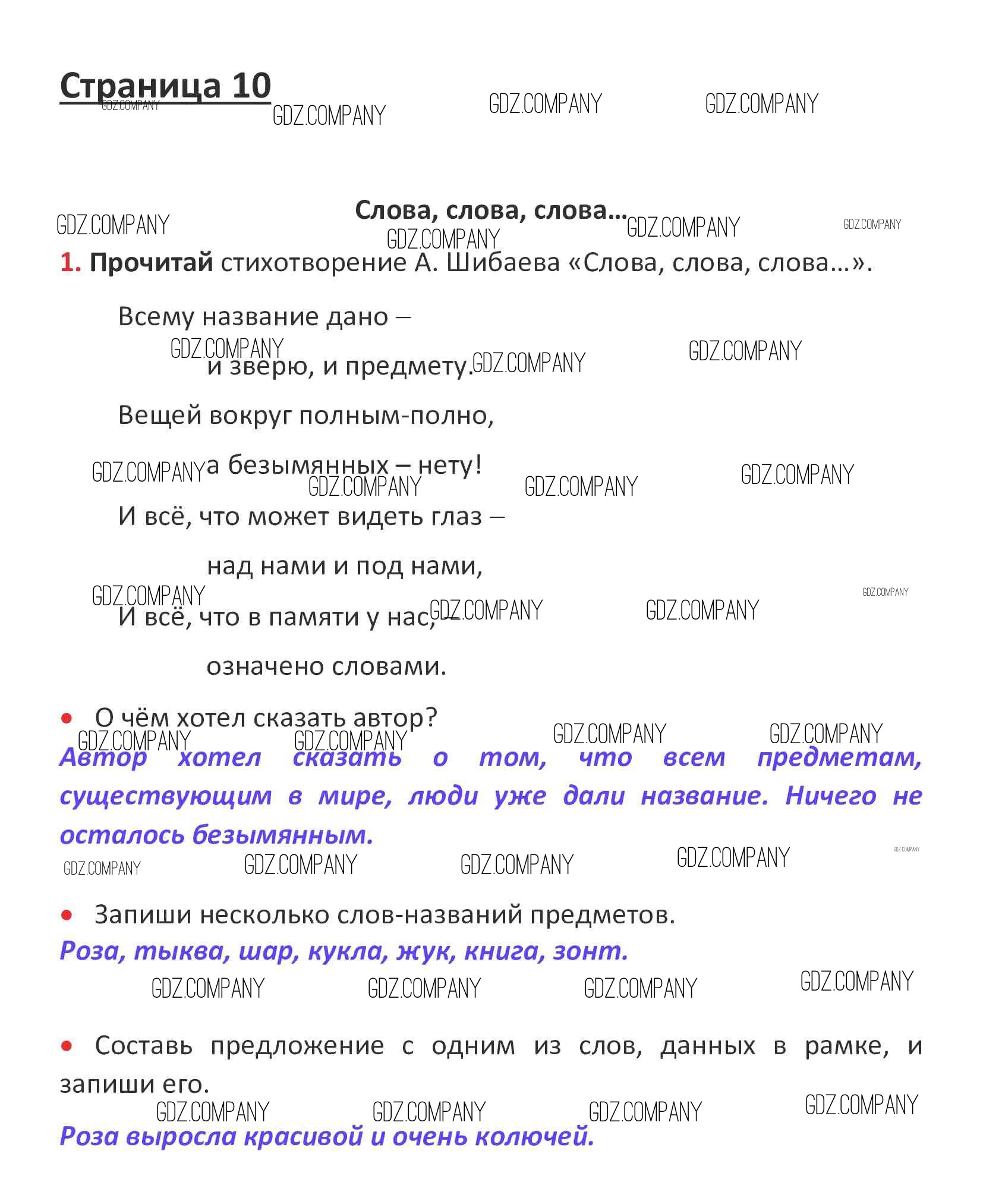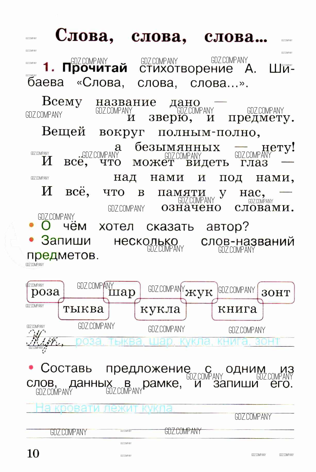 Здесь готовые ответы по Русскому языку за 1 (первый) класс от Канакина, Горецкий Рабочая тетрадь Школа России (издательство: Просвещение от 2013 г.) № стр. 10