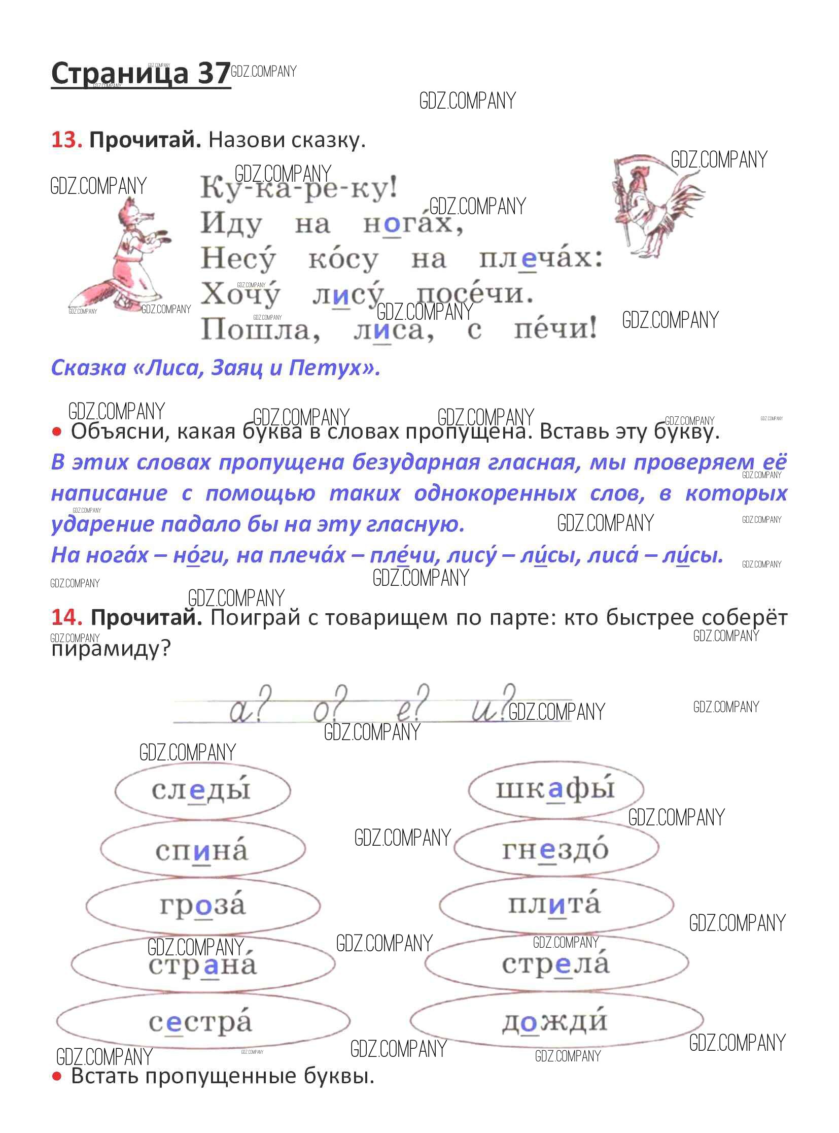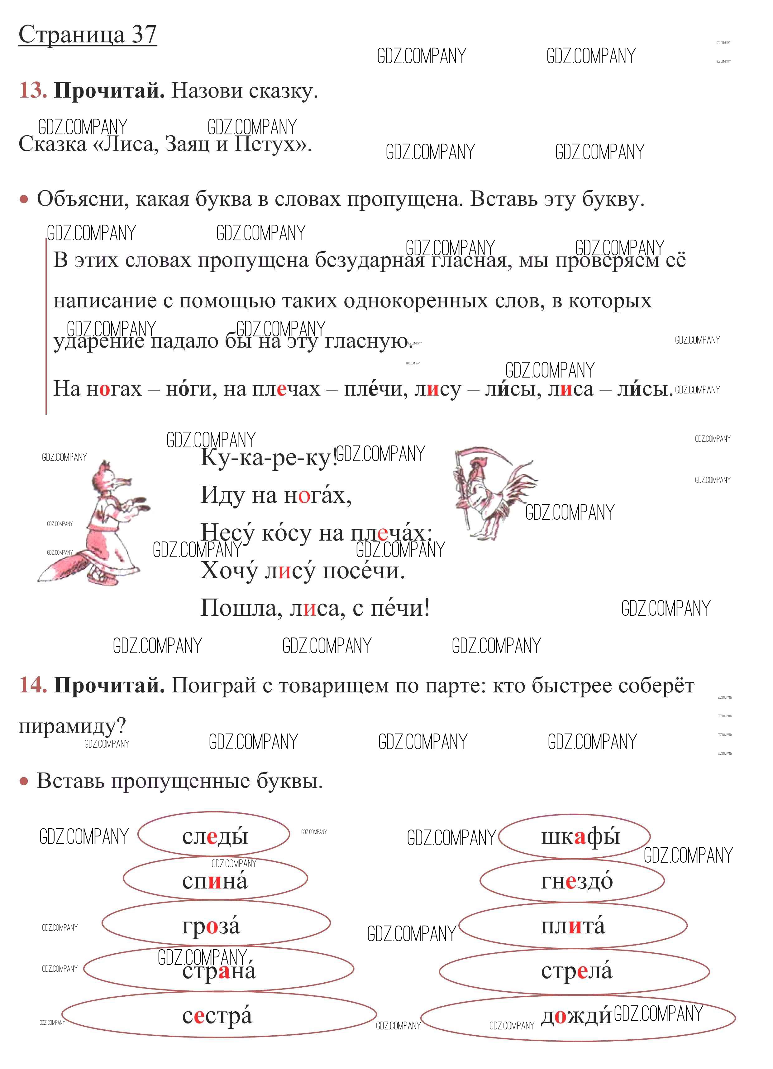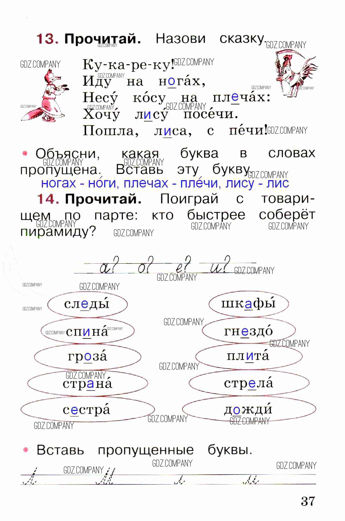 Здесь готовые ответы по Русскому языку за 1 (первый) класс от Канакина, Горецкий Рабочая тетрадь Школа России (издательство: Просвещение от 2013 г.) № стр. 37
