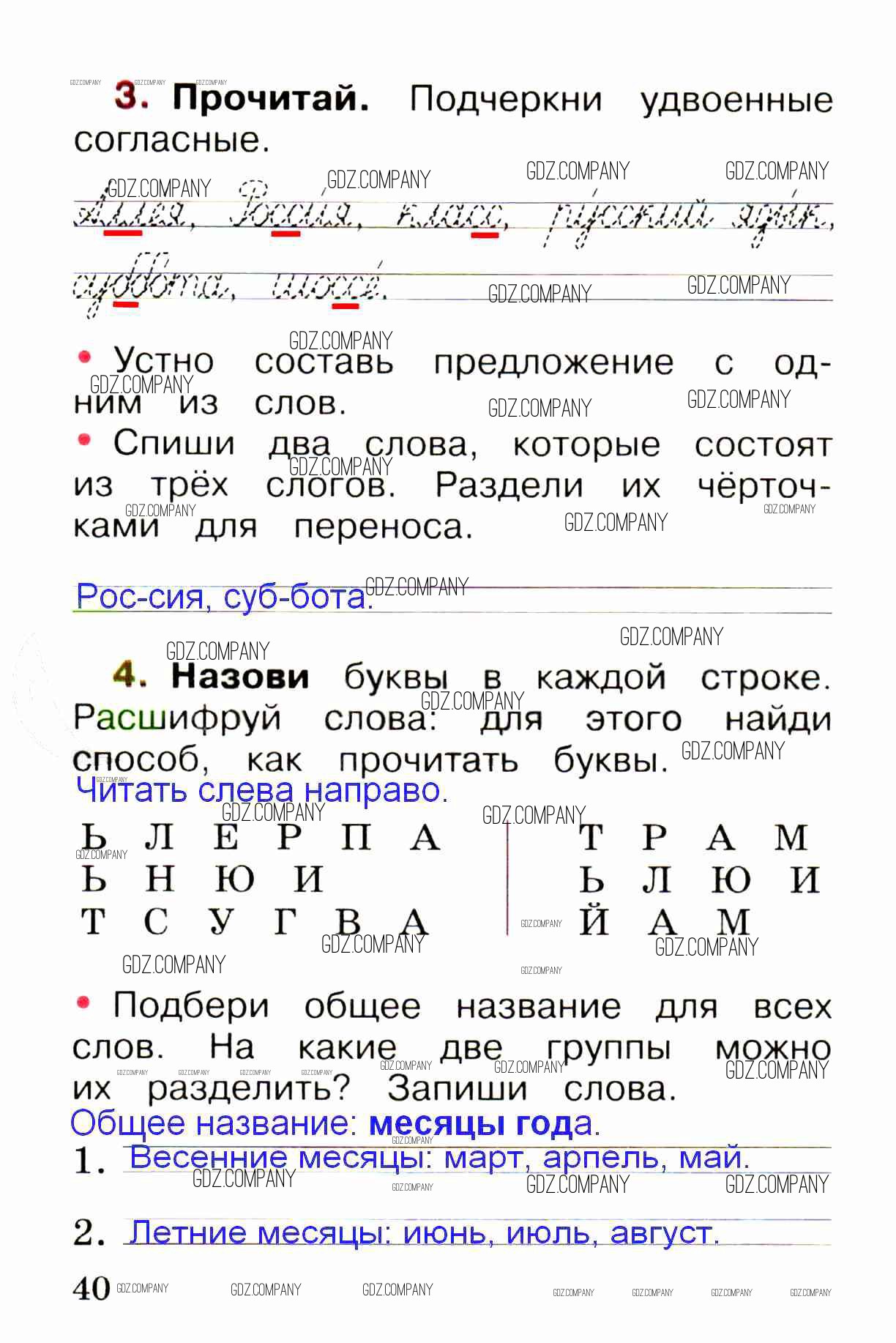 Здесь готовые ответы по Русскому языку за 1 (первый) класс от Канакина, Горецкий Рабочая тетрадь Школа России (издательство: Просвещение от 2013 г.) № стр. 40