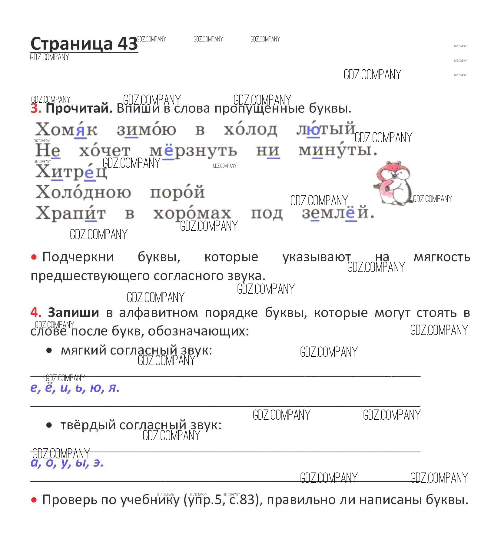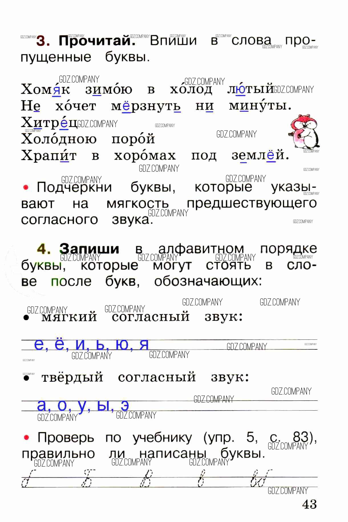 Здесь готовые ответы по Русскому языку за 1 (первый) класс от Канакина, Горецкий Рабочая тетрадь Школа России (издательство: Просвещение от 2013 г.) № стр. 43