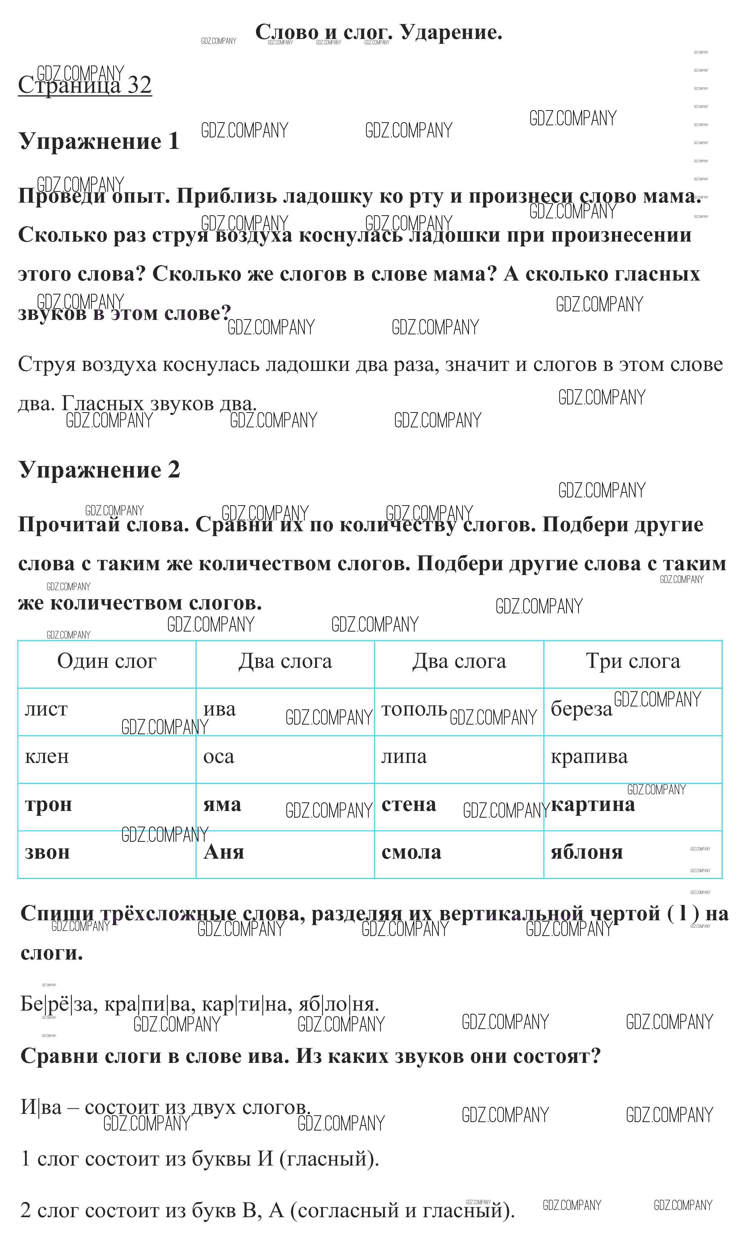 глава 4. Слово и слог. Ударение / стр. 32