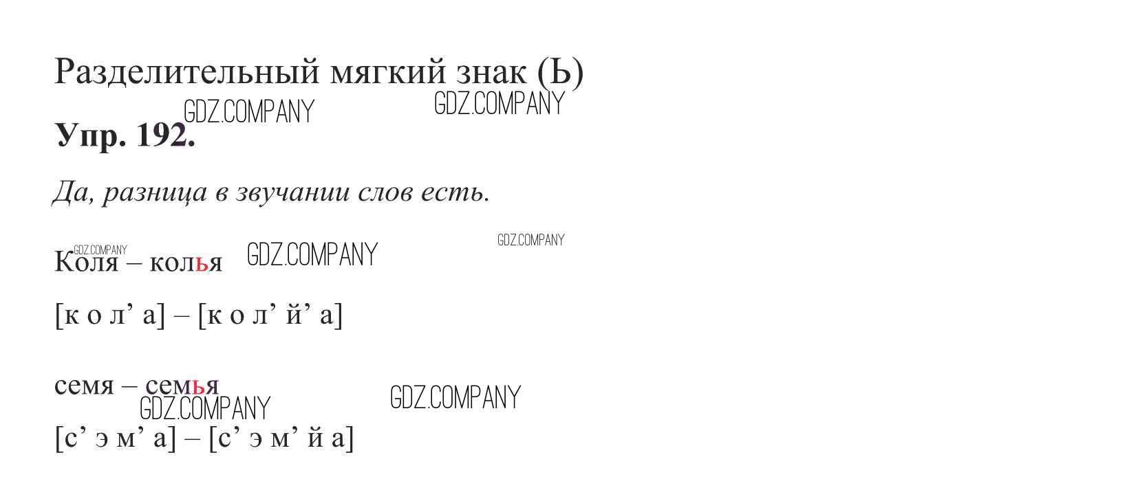 тема 18. разделительный мягкий знак (Ь) / упр. 192