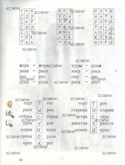 Здесь готовые ответы по Русскому языку за 1 (первый) класс от Кузнецова Рабочая тетрадь (издательство: Вентана-граф от 2020 г.) № 45