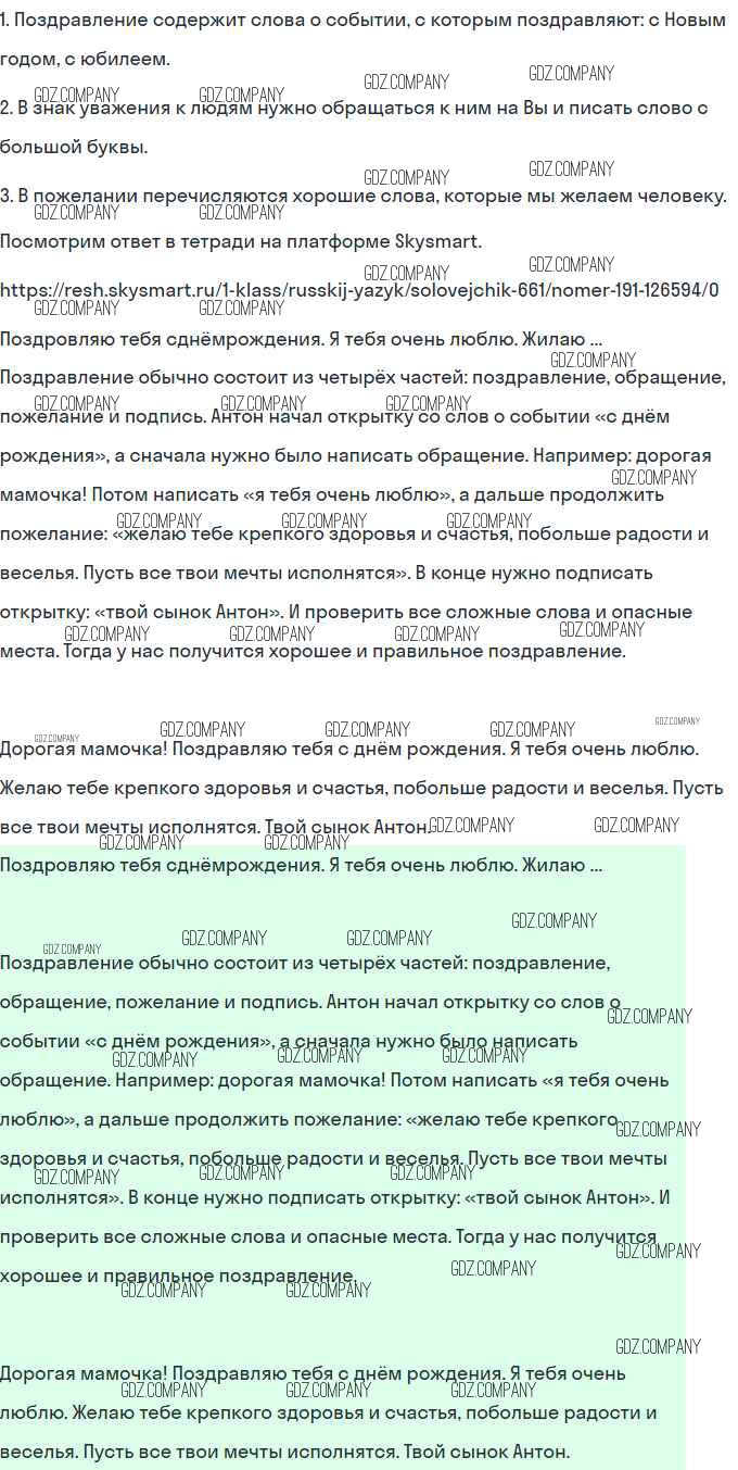 Здесь готовые ответы по Русскому языку за 1 (первый) класс от Кузьменко, Соловейчик, Бетенькова, Курлыгина Учебник Гармония (издательство: Просвещение от 2022 г.) № 191