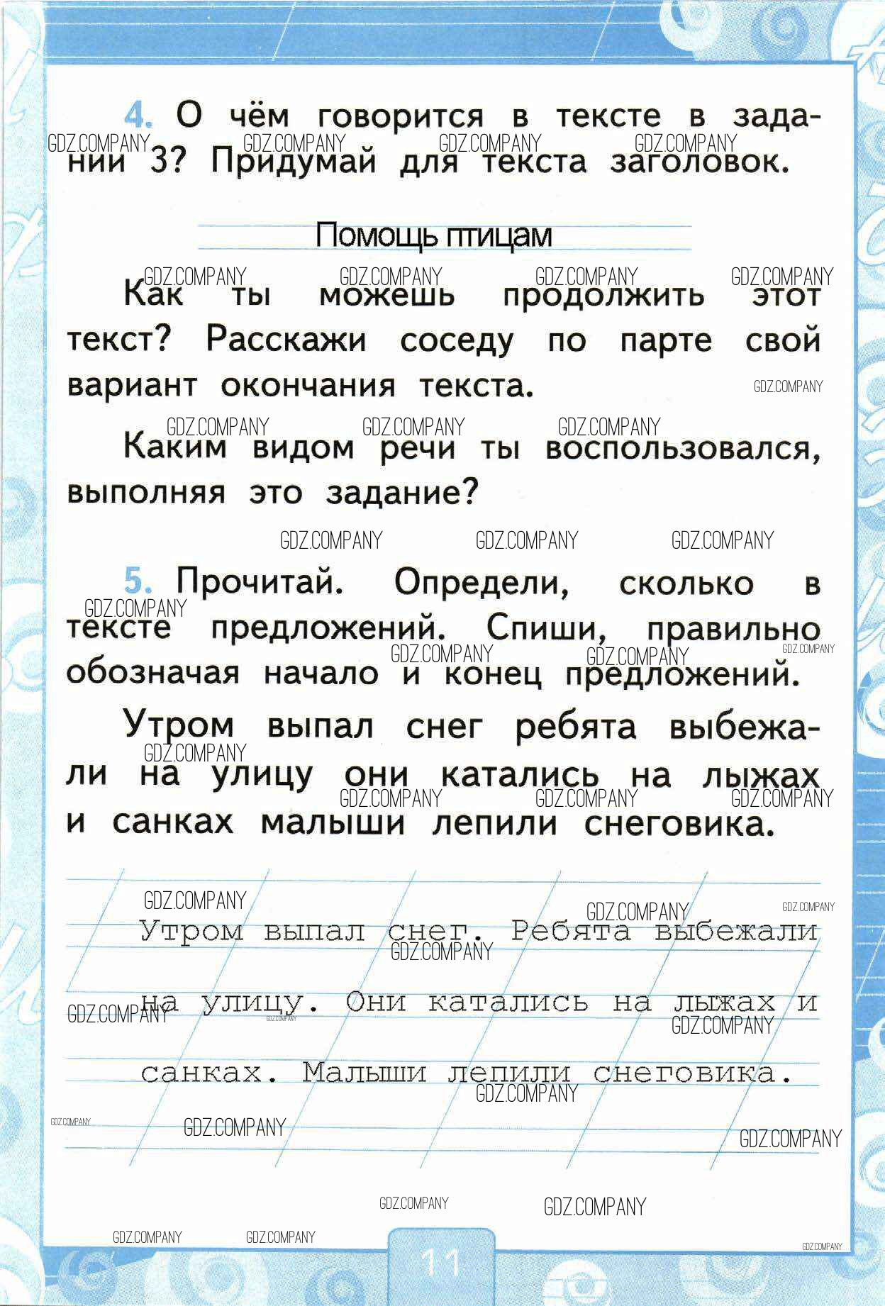 Здесь готовые ответы по Русскому языку за 1 (первый) класс от Тихомирова Рабочая тетрадь УМК (издательство: Экзамен от 2016 г.) № 11