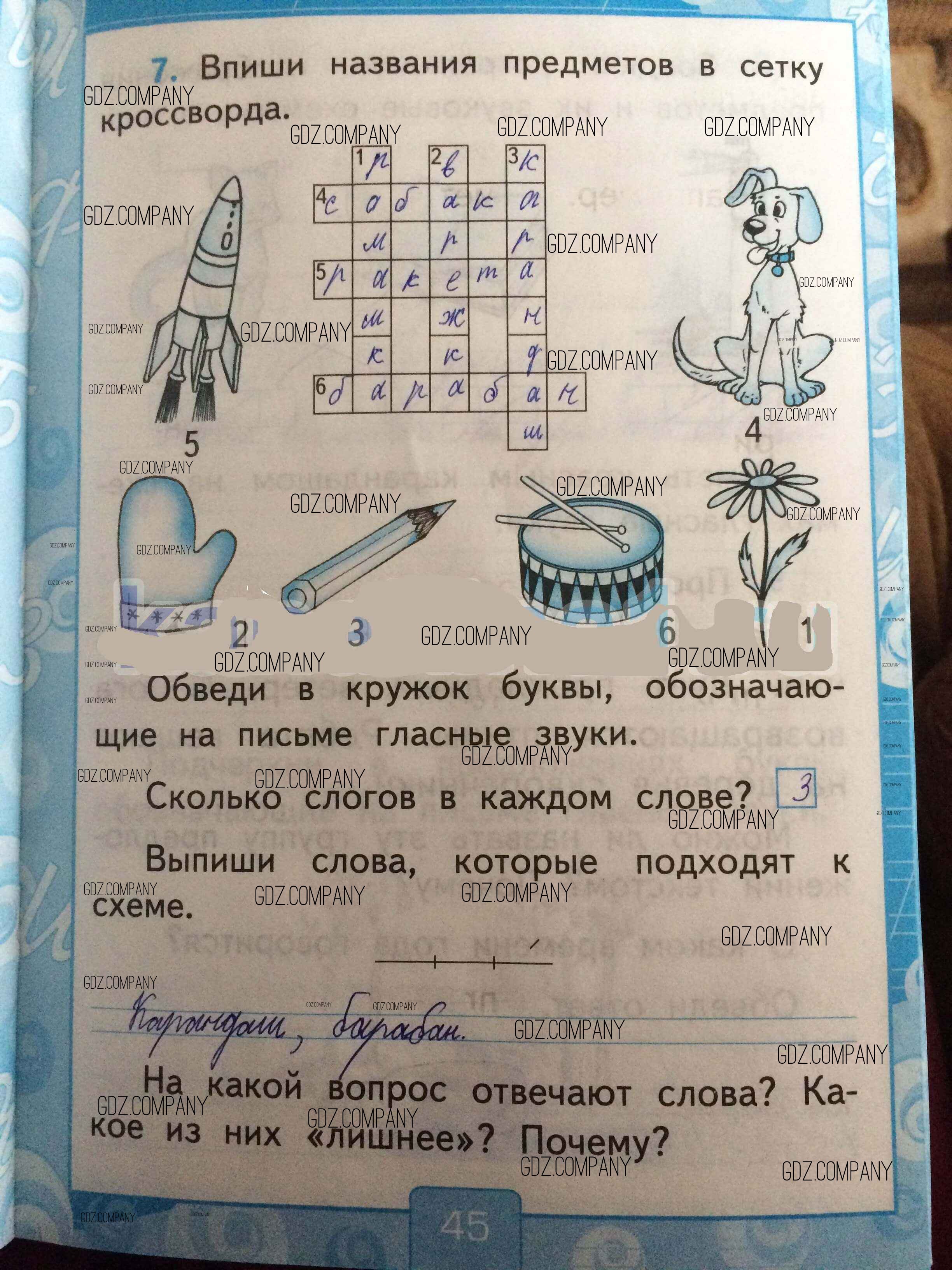Здесь готовые ответы по Русскому языку за 1 (первый) класс от Тихомирова Рабочая тетрадь УМК (издательство: Экзамен от 2016 г.) № 45