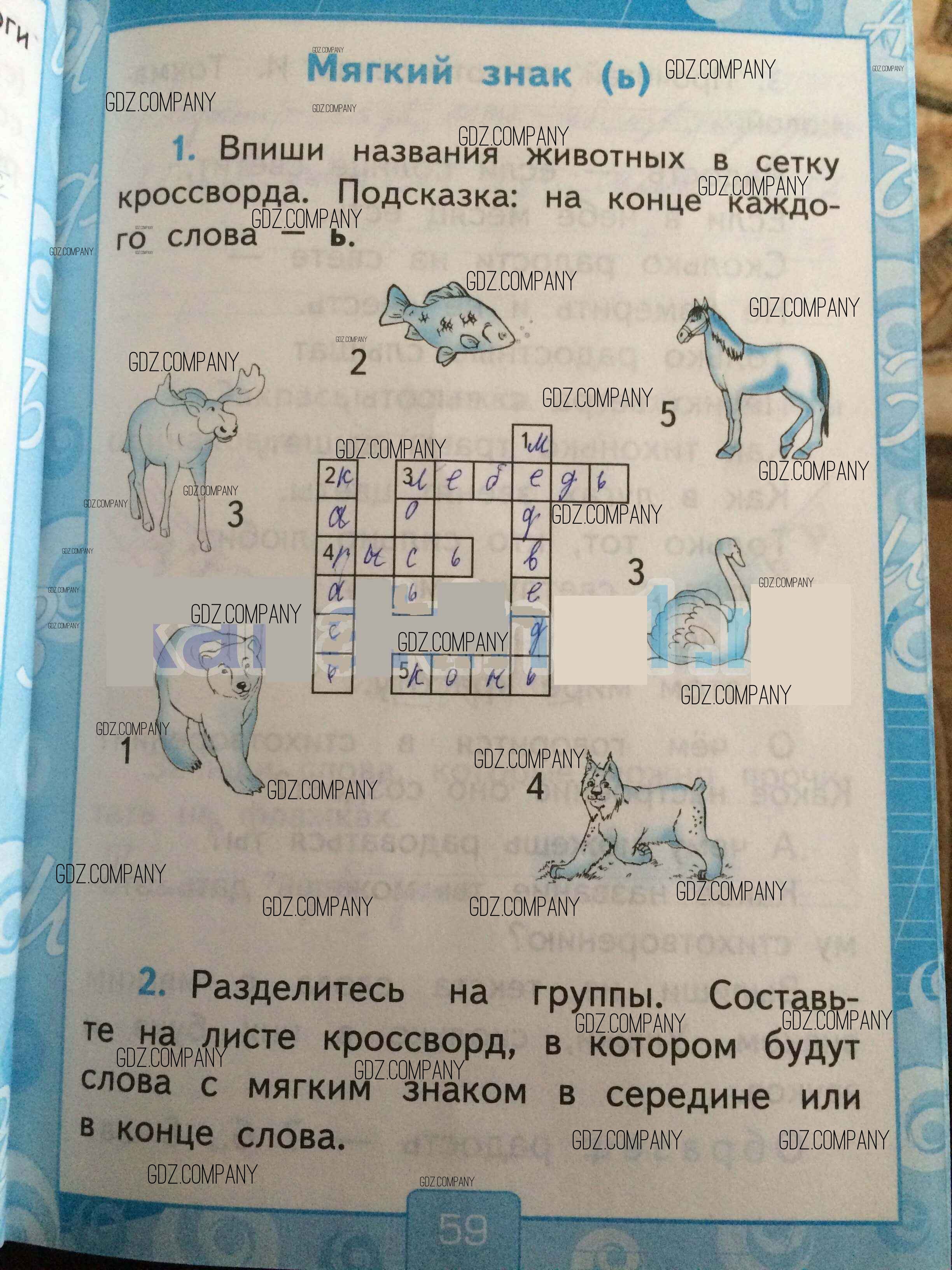 Здесь готовые ответы по Русскому языку за 1 (первый) класс от Тихомирова Рабочая тетрадь УМК (издательство: Экзамен от 2016 г.) № 59
