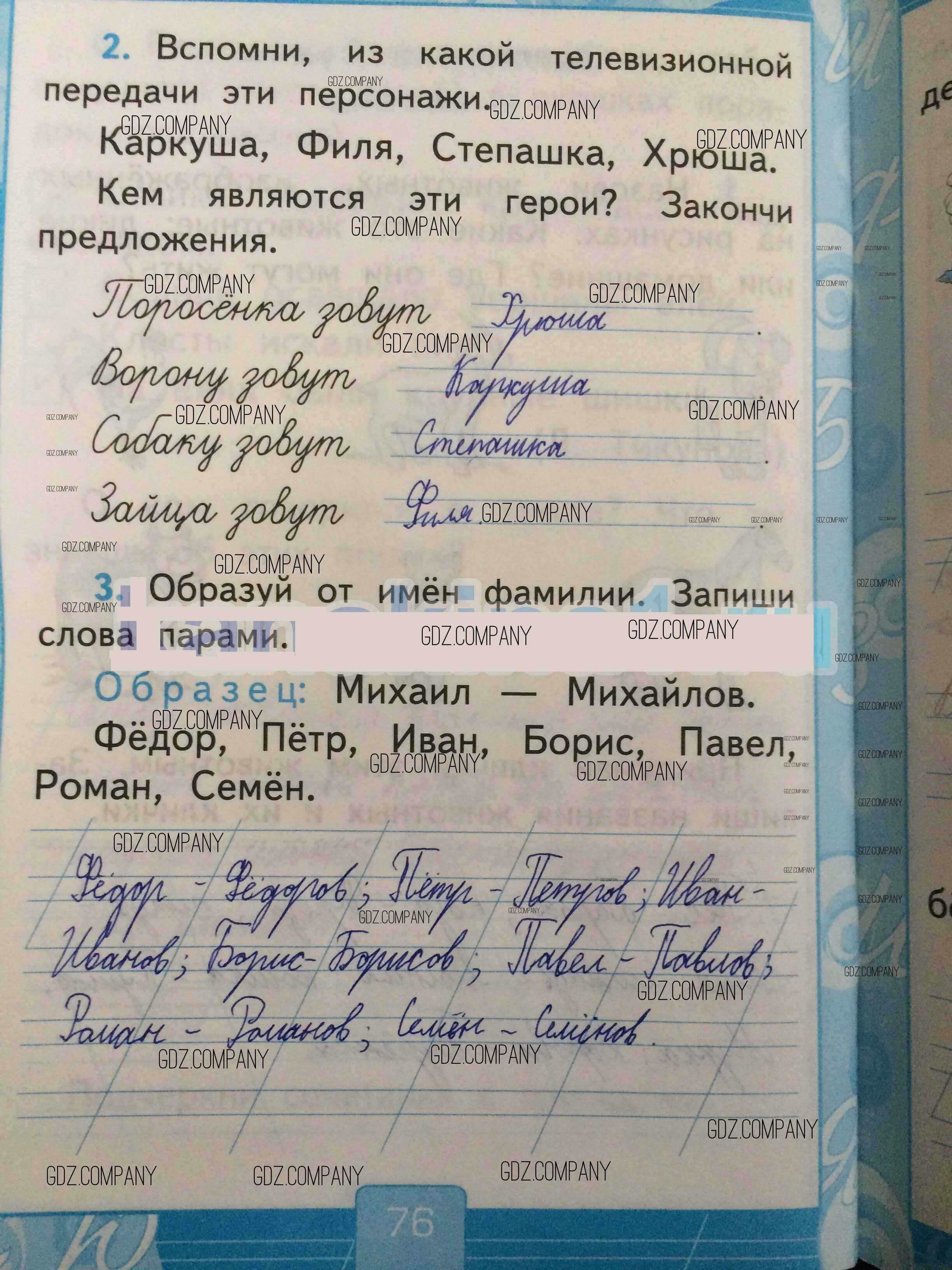 Здесь готовые ответы по Русскому языку за 1 (первый) класс от Тихомирова Рабочая тетрадь УМК (издательство: Экзамен от 2016 г.) № 76