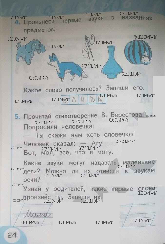 Здесь готовые ответы по Русскому языку за 1 (первый) класс от Тихомирова Рабочая тетрадь УМК (издательство: Экзамен от 2016 г.) № 24