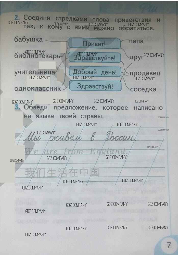Здесь готовые ответы по Русскому языку за 1 (первый) класс от Тихомирова Рабочая тетрадь УМК (издательство: Экзамен от 2016 г.) № 7