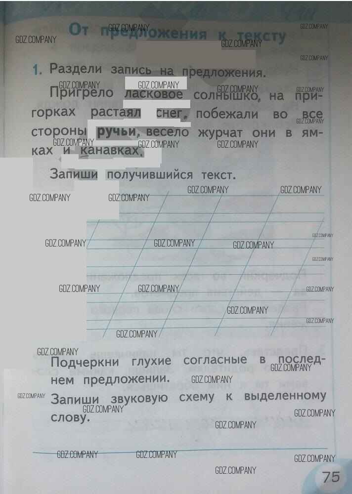 Здесь готовые ответы по Русскому языку за 1 (первый) класс от Тихомирова Рабочая тетрадь УМК (издательство: Экзамен от 2016 г.) № 75