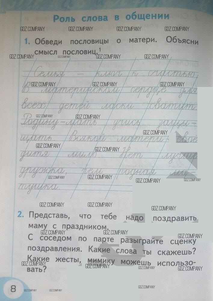 Здесь готовые ответы по Русскому языку за 1 (первый) класс от Тихомирова Рабочая тетрадь УМК (издательство: Экзамен от 2016 г.) № 8