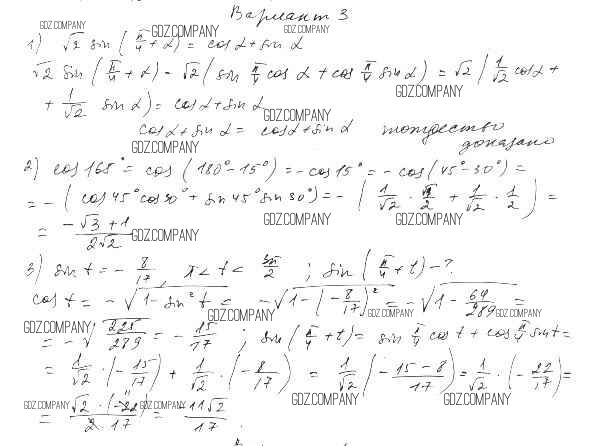 Здесь готовые ответы по Алгебре за 10 (десятый) класс от Александрова Самостоятельные работы Базовый уровень (издательство: Мнемозина от 2017 г.) № вариант 3 Базовый уровень