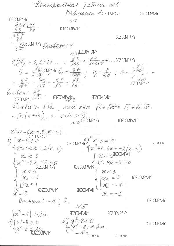 Здесь готовые ответы по Алгебре за 10 (десятый) класс от Глизбург Контрольные работы Базовый и углубленный уровень (издательство: Мнемозина от 2014 г.) № вариант 1 Базовый и углубленный уровень