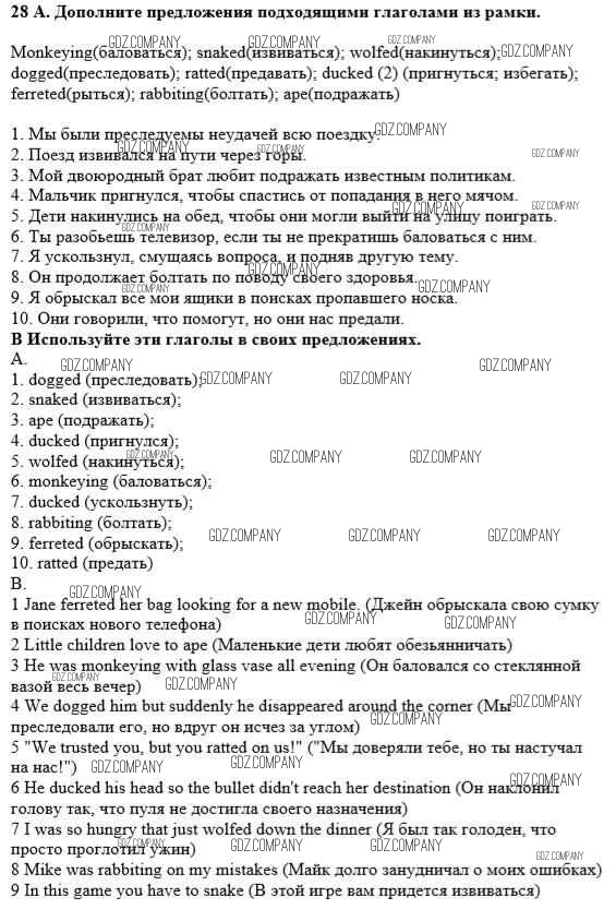 Здесь готовые ответы по Английскому языку за 10 (десятый) класс от Афанасьева, Михеева Учебник Углубленный уровень (издательство: Просвещение от 2014 г.) № 28 Углубленный уровень