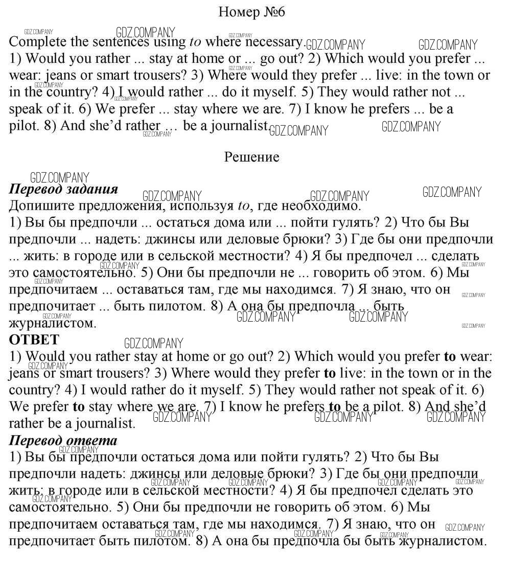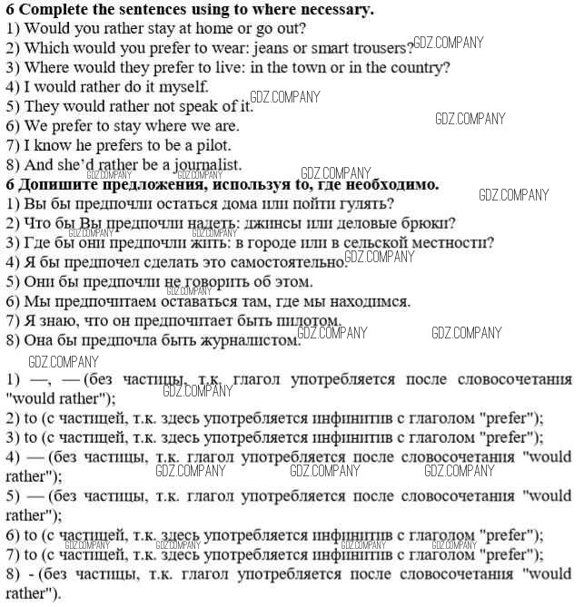 Здесь готовые ответы по Английскому языку за 10 (десятый) класс от Афанасьева, Михеева, Баранова Учебник Rainbow Базовый уровень (издательство: Дрофа от 2016 г.) № 6 Базовый уровень
