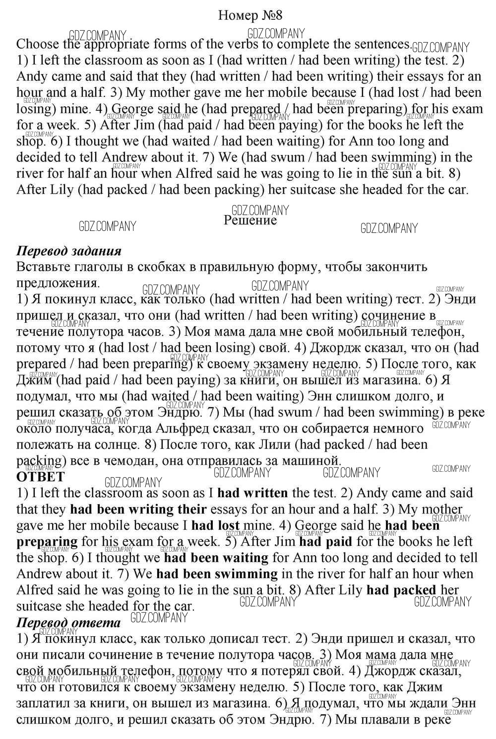 Здесь готовые ответы по Английскому языку за 10 (десятый) класс от Афанасьева, Михеева, Баранова Учебник Rainbow Базовый уровень (издательство: Дрофа от 2016 г.) № 8 Базовый уровень