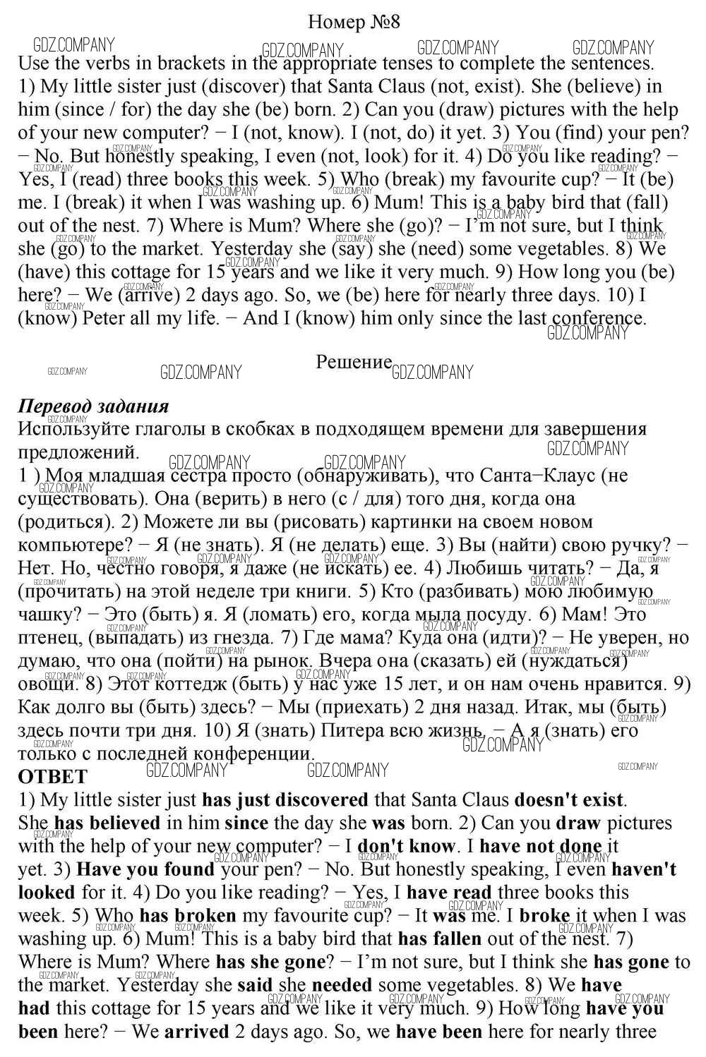 Здесь готовые ответы по Английскому языку за 10 (десятый) класс от Афанасьева, Михеева, Баранова Учебник Rainbow Базовый уровень (издательство: Дрофа от 2016 г.) № 8 Базовый уровень