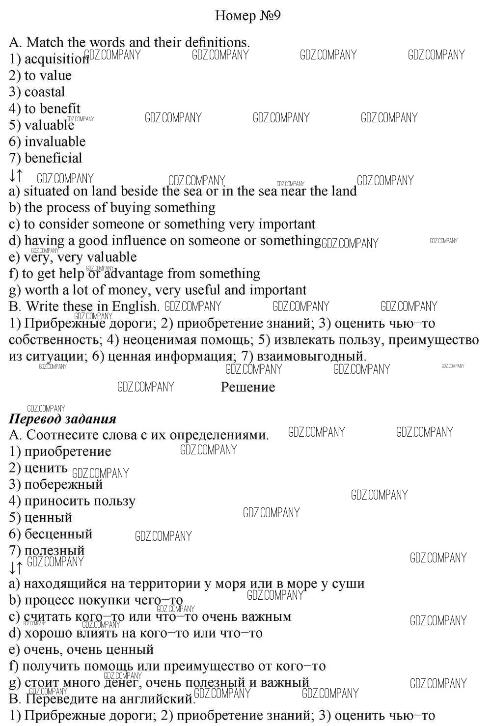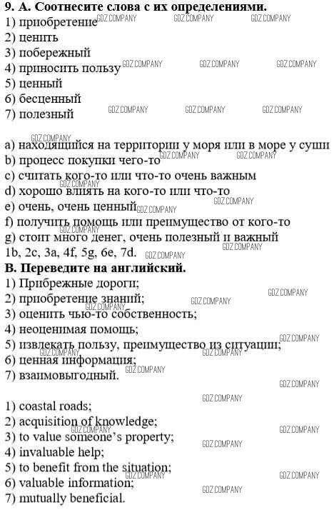 Здесь готовые ответы по Английскому языку за 10 (десятый) класс от Афанасьева, Михеева, Баранова Учебник Rainbow Базовый уровень (издательство: Дрофа от 2016 г.) № 9 Базовый уровень