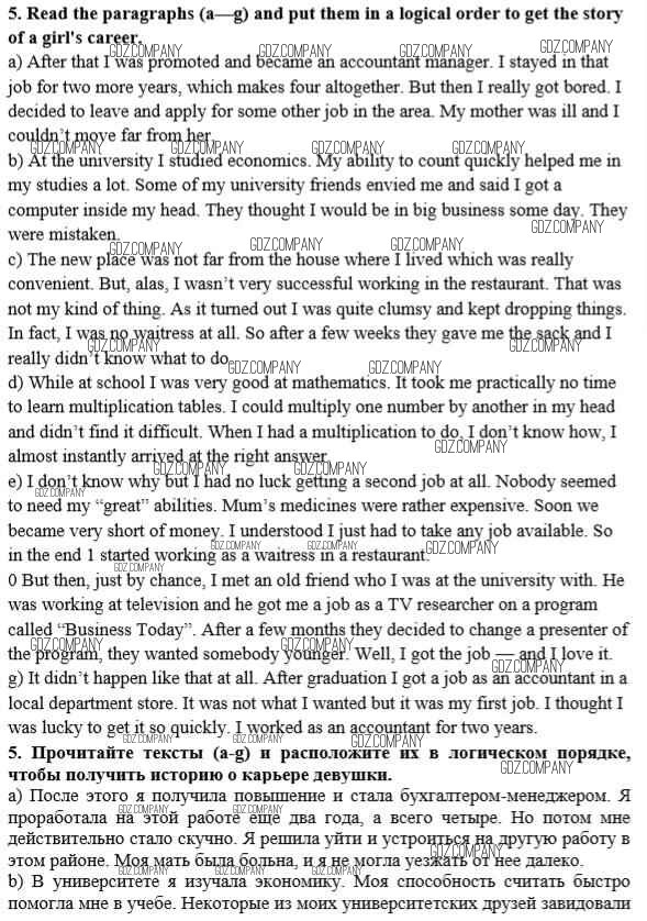 Здесь готовые ответы по Английскому языку за 10 (десятый) класс от Афанасьева, Михеева, Баранова Рабочая тетрадь Rainbow (издательство: Дрофа от 2016 г.) № 5