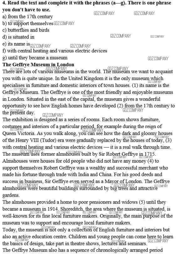 Здесь готовые ответы по Английскому языку за 10 (десятый) класс от Афанасьева, Михеева, Баранова Рабочая тетрадь Rainbow (издательство: Дрофа от 2016 г.) № 4