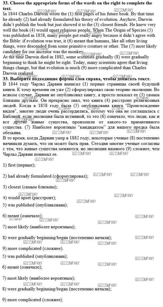 Здесь готовые ответы по Английскому языку за 10 (десятый) класс от Афанасьева, Михеева, Баранова Рабочая тетрадь Rainbow (издательство: Дрофа от 2016 г.) № 33