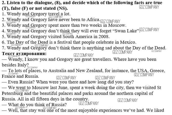 Здесь готовые ответы по Английскому языку за 10 (десятый) класс от Афанасьева, Михеева, Баранова Рабочая тетрадь Rainbow (издательство: Дрофа от 2016 г.) № 2