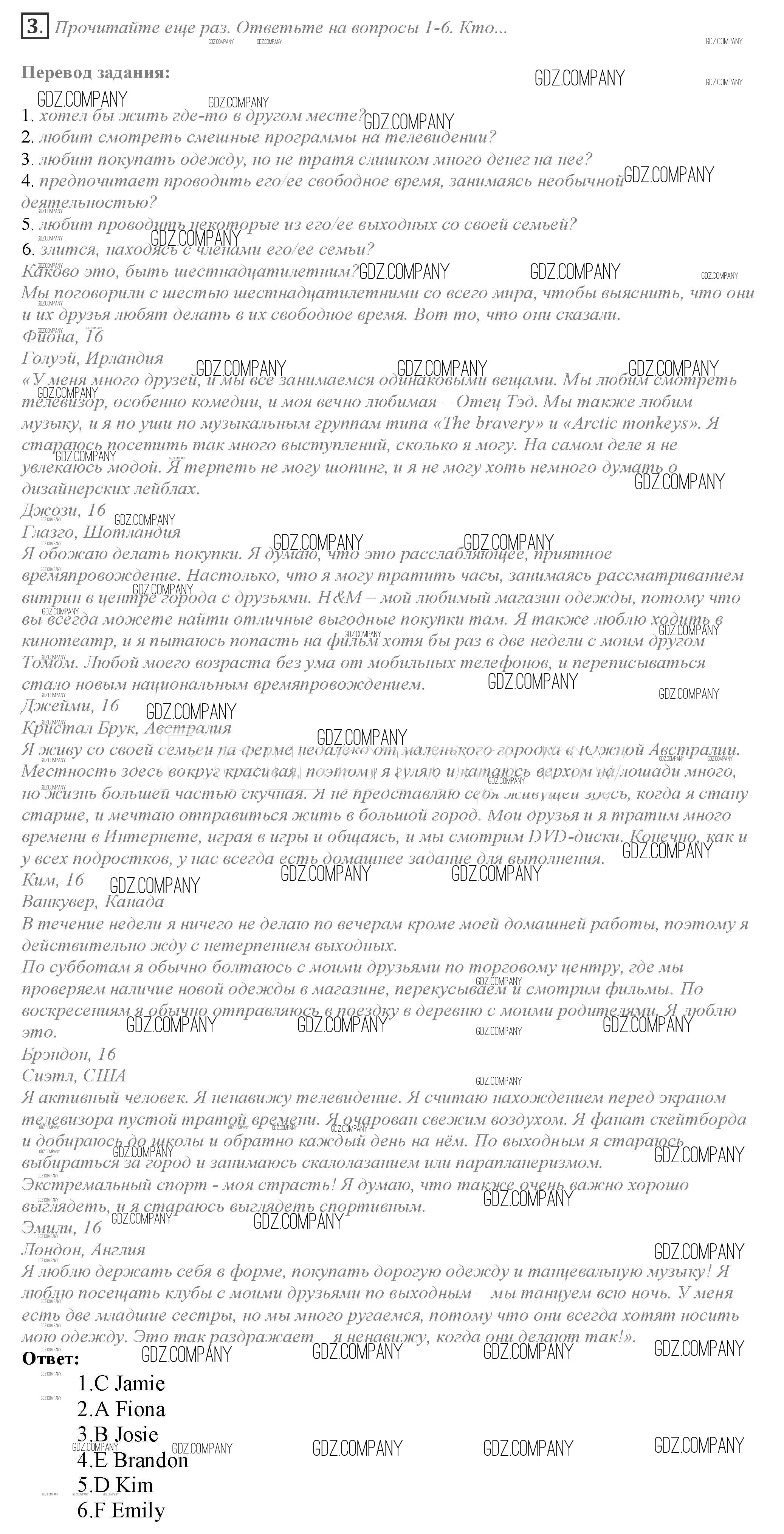 Здесь готовые ответы по Английскому языку за 10 (десятый) класс от Афанасьева, Дули, Михеева, Оби, Эванс Учебник Spotlight (издательство: Просвещение от 2015 г.) № 3