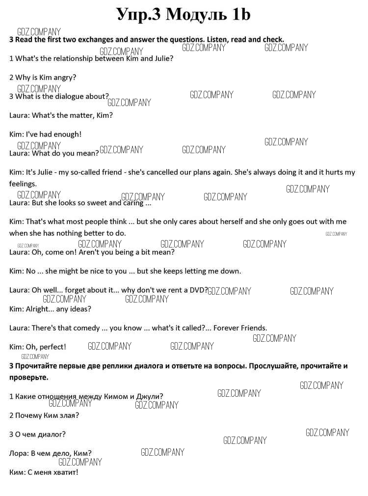 Здесь готовые ответы по Английскому языку за 10 (десятый) класс от Афанасьева, Дули, Михеева, Оби, Эванс Учебник Spotlight (издательство: Просвещение от 2015 г.) № 3