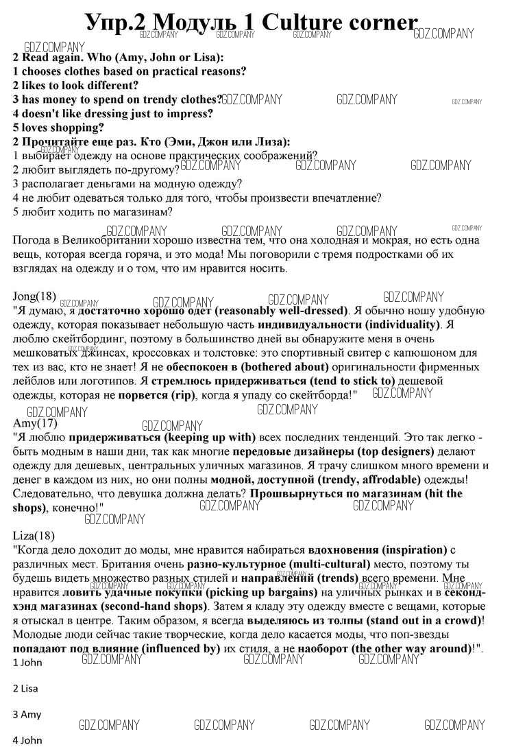 Здесь готовые ответы по Английскому языку за 10 (десятый) класс от Афанасьева, Дули, Михеева, Оби, Эванс Учебник Spotlight (издательство: Просвещение от 2015 г.) № 2