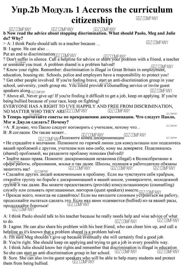 Здесь готовые ответы по Английскому языку за 10 (десятый) класс от Афанасьева, Дули, Михеева, Оби, Эванс Учебник Spotlight (издательство: Просвещение от 2015 г.) № 2b