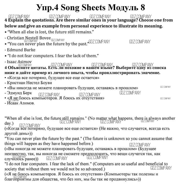 Здесь готовые ответы по Английскому языку за 10 (десятый) класс от Афанасьева, Дули, Михеева, Оби, Эванс Учебник Spotlight (издательство: Просвещение от 2015 г.) № 4