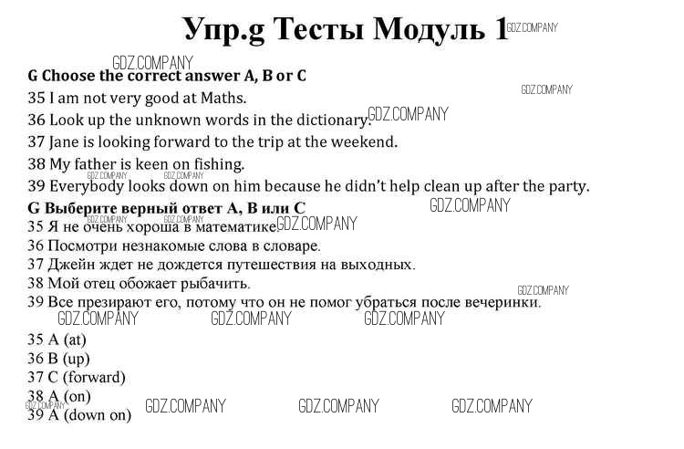 Здесь готовые ответы по Английскому языку за 10 (десятый) класс от Афанасьева, Дули, Михеева, Оби, Эванс Учебник Spotlight (издательство: Просвещение от 2015 г.) № g