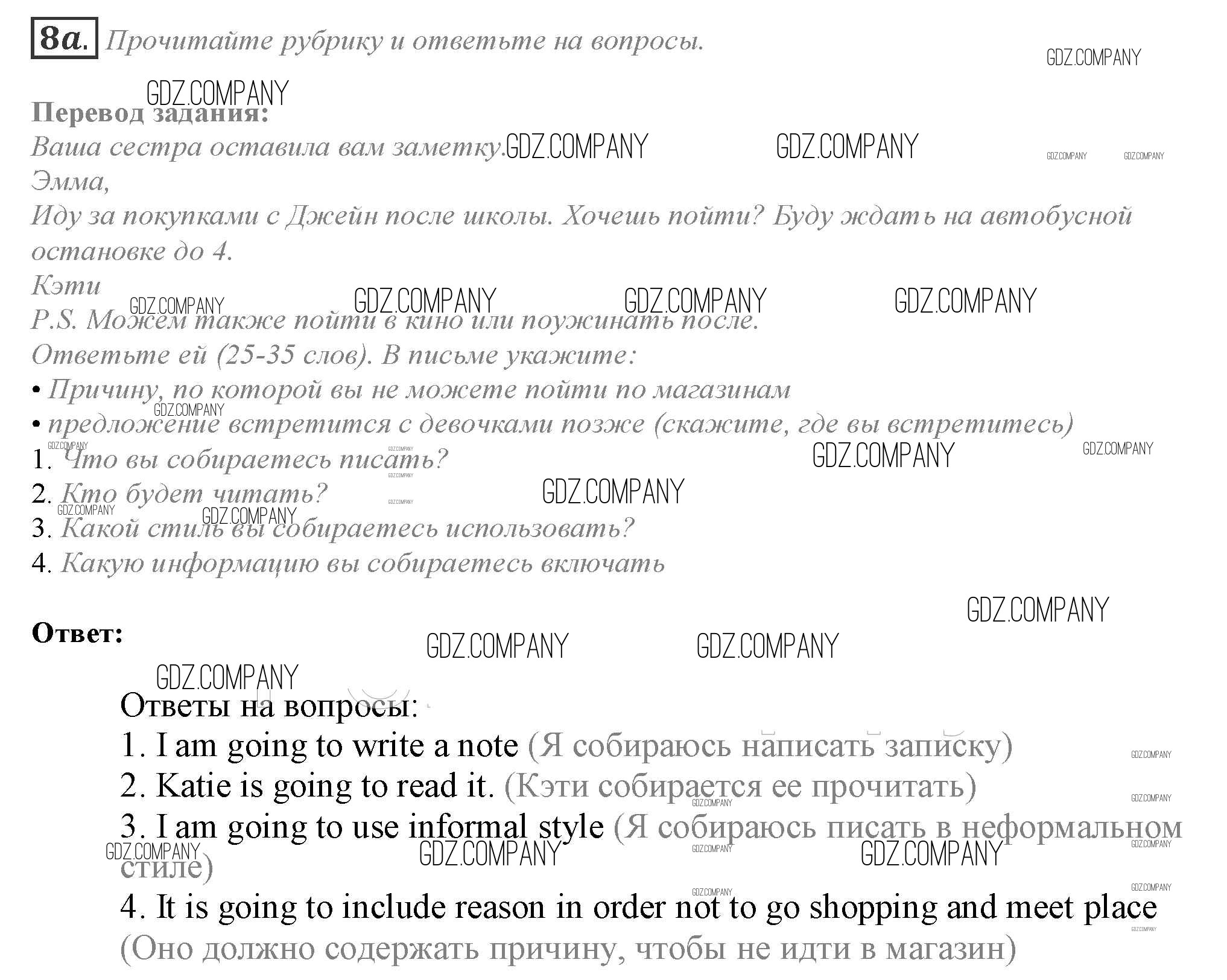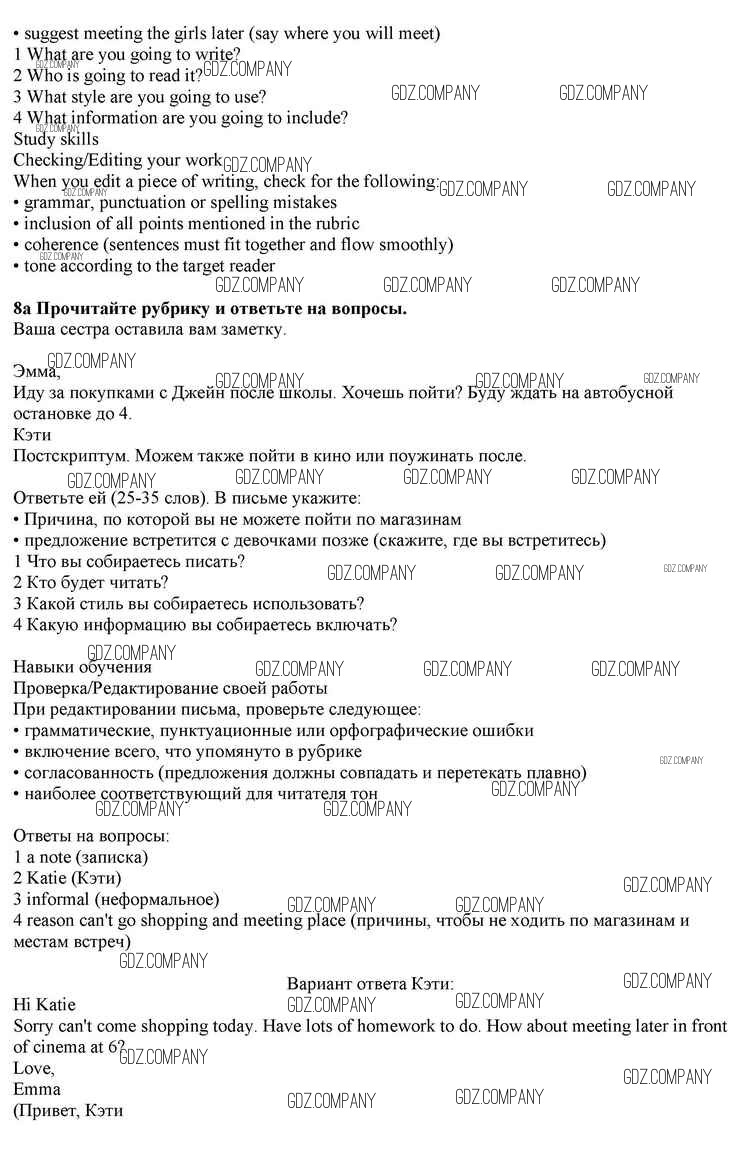 Здесь готовые ответы по Английскому языку за 10 (десятый) класс от Афанасьева, Дули, Михеева, Оби, Эванс Учебник Spotlight (издательство: Просвещение от 2015 г.) № 8a