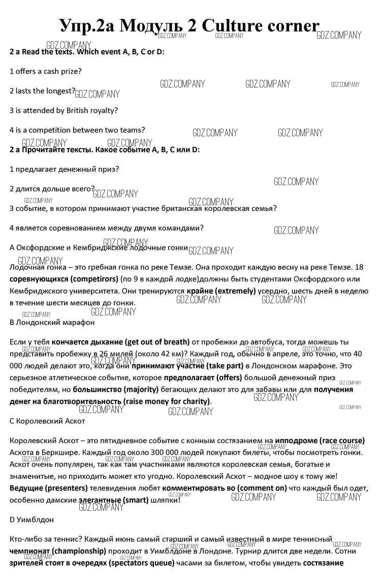 Здесь готовые ответы по Английскому языку за 10 (десятый) класс от Афанасьева, Дули, Михеева, Оби, Эванс Учебник Spotlight (издательство: Просвещение от 2015 г.) № 2a