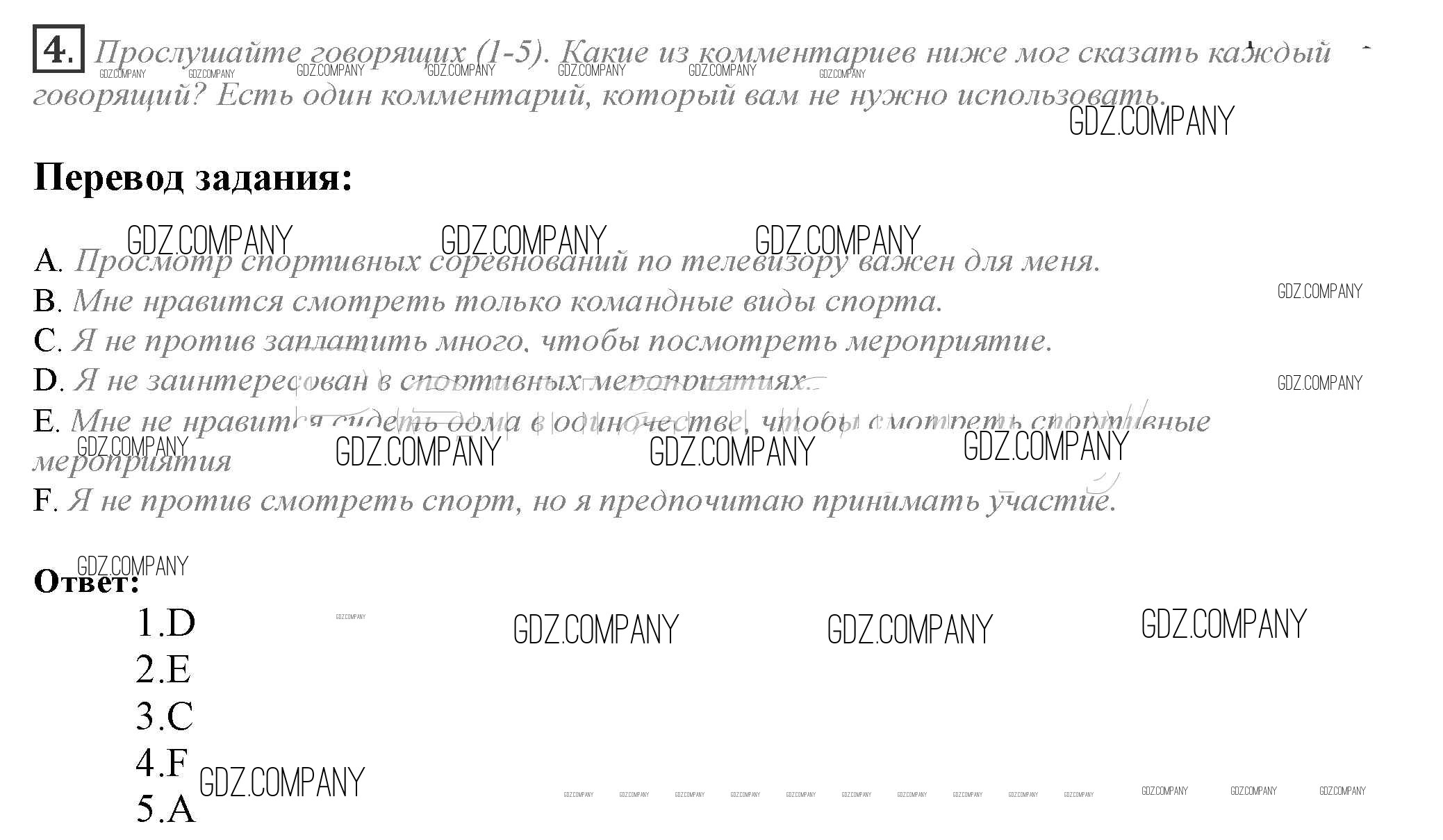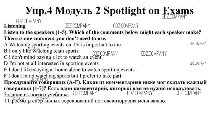 Здесь готовые ответы по Английскому языку за 10 (десятый) класс от Афанасьева, Дули, Михеева, Оби, Эванс Учебник Spotlight (издательство: Просвещение от 2015 г.) № 4