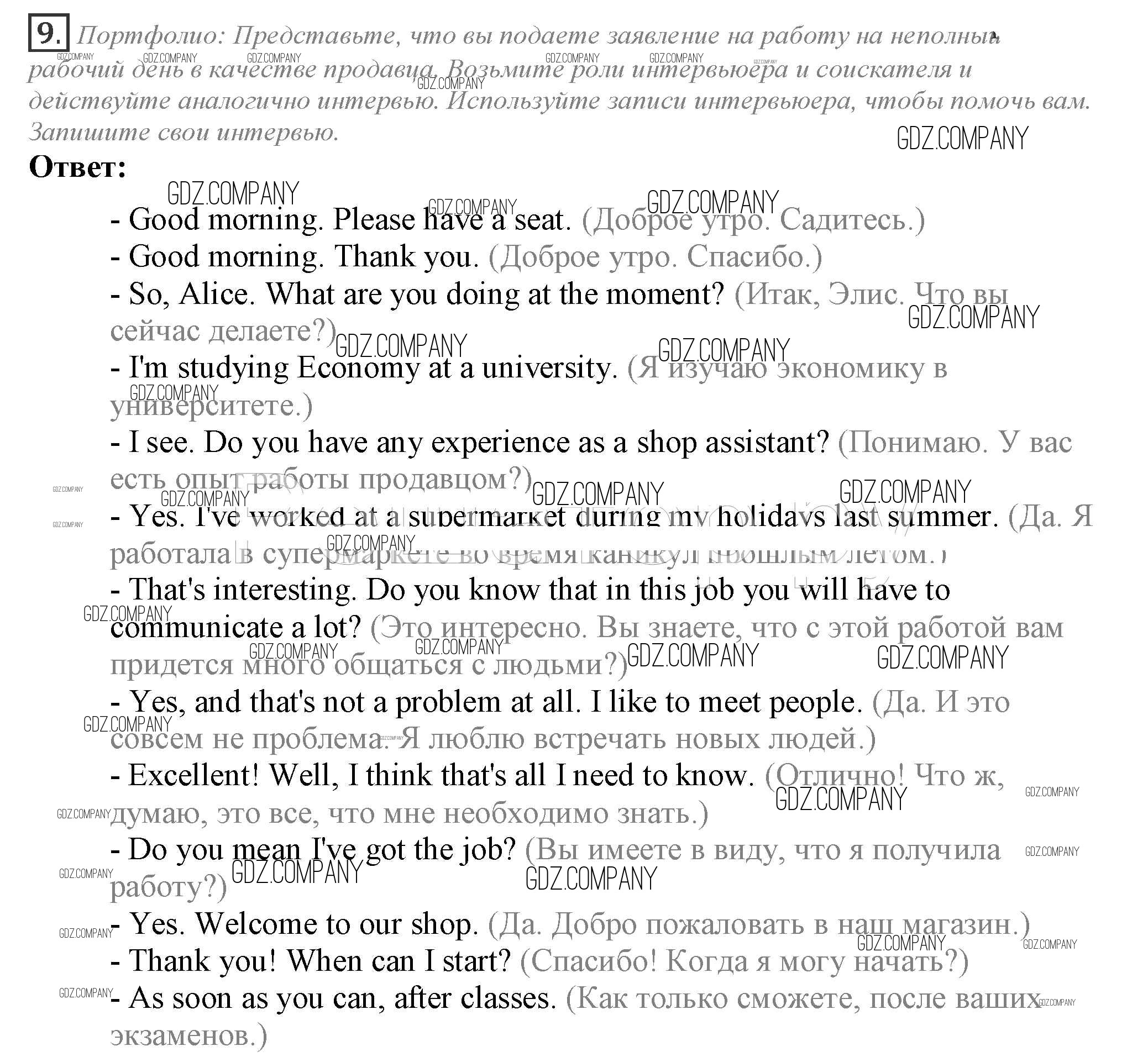 Здесь готовые ответы по Английскому языку за 10 (десятый) класс от Афанасьева, Дули, Михеева, Оби, Эванс Учебник Spotlight (издательство: Просвещение от 2015 г.) № 9