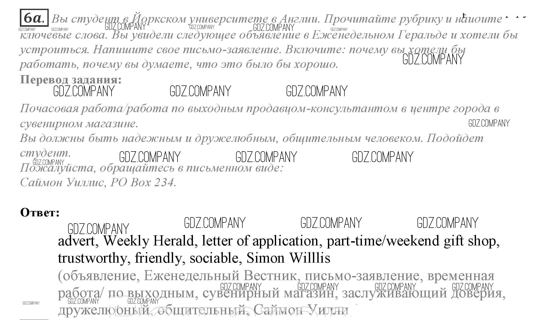 Здесь готовые ответы по Английскому языку за 10 (десятый) класс от Афанасьева, Дули, Михеева, Оби, Эванс Учебник Spotlight (издательство: Просвещение от 2015 г.) № 6a