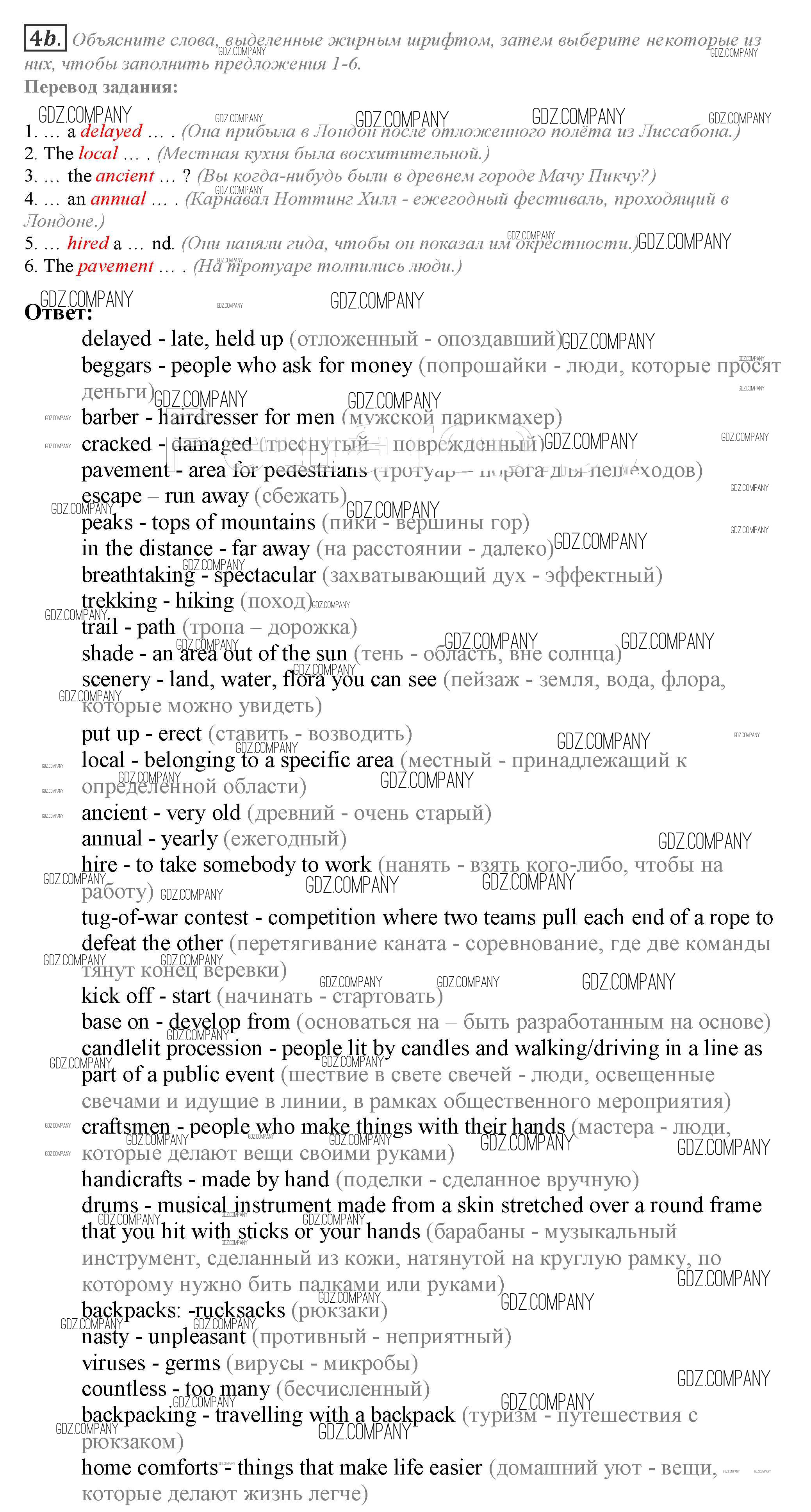 Здесь готовые ответы по Английскому языку за 10 (десятый) класс от Афанасьева, Дули, Михеева, Оби, Эванс Учебник Spotlight (издательство: Просвещение от 2015 г.) № 4b