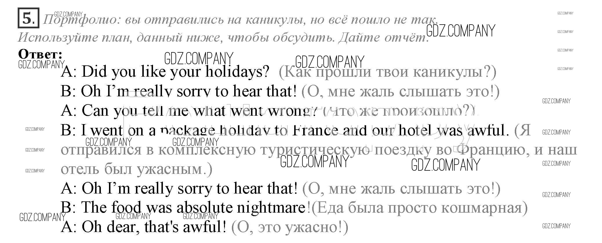 Здесь готовые ответы по Английскому языку за 10 (десятый) класс от Афанасьева, Дули, Михеева, Оби, Эванс Учебник Spotlight (издательство: Просвещение от 2015 г.) № 5