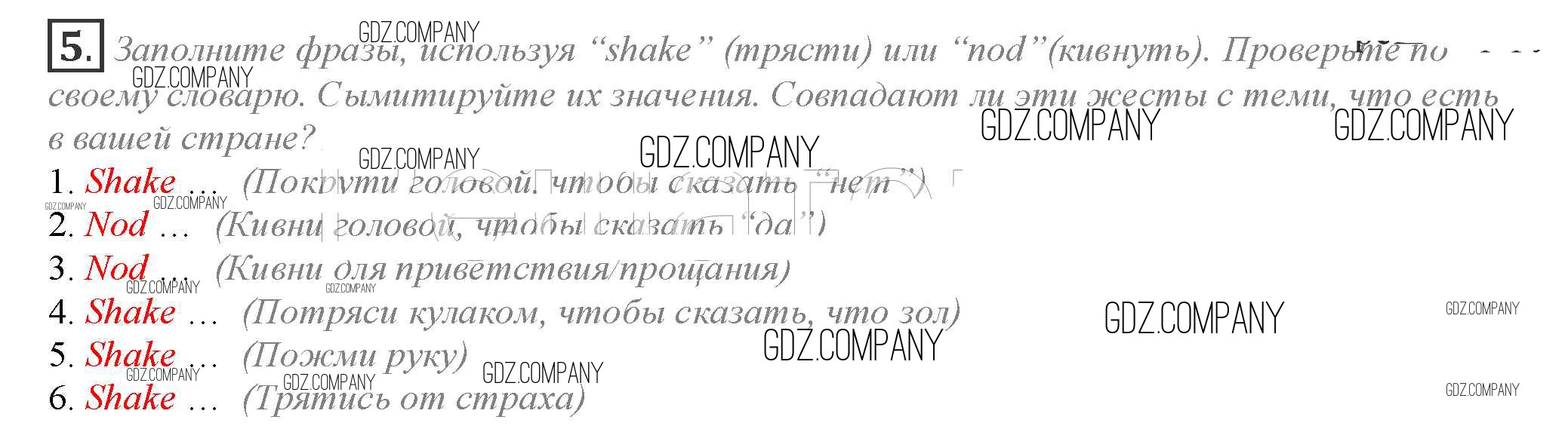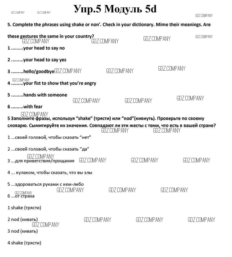 Здесь готовые ответы по Английскому языку за 10 (десятый) класс от Афанасьева, Дули, Михеева, Оби, Эванс Учебник Spotlight (издательство: Просвещение от 2015 г.) № 5