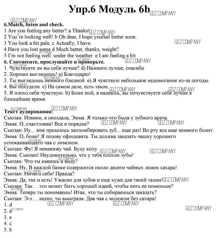 Здесь готовые ответы по Английскому языку за 10 (десятый) класс от Афанасьева, Дули, Михеева, Оби, Эванс Учебник Spotlight (издательство: Просвещение от 2015 г.) № 6