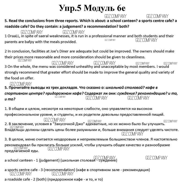 Здесь готовые ответы по Английскому языку за 10 (десятый) класс от Афанасьева, Дули, Михеева, Оби, Эванс Учебник Spotlight (издательство: Просвещение от 2015 г.) № 5