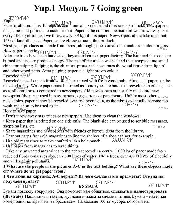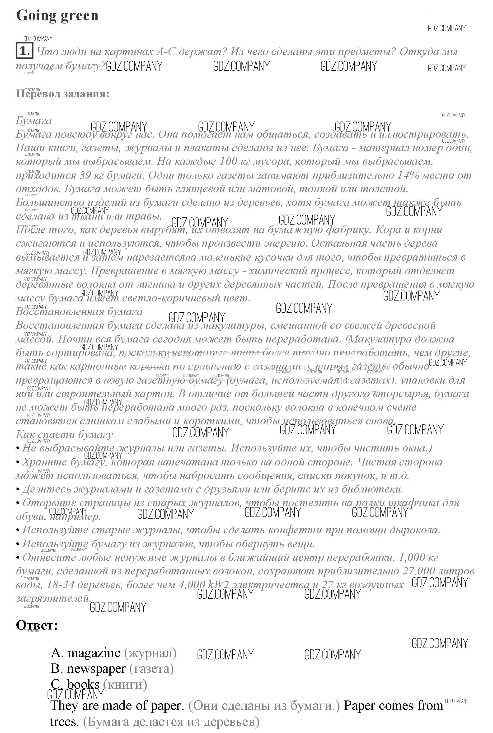 Здесь готовые ответы по Английскому языку за 10 (десятый) класс от Афанасьева, Дули, Михеева, Оби, Эванс Учебник Spotlight (издательство: Просвещение от 2015 г.) № 1